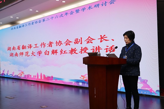 湖南省翻译工作者协会副会长,原湖南师范大学副校长白解红教授主持闭幕式。该环节为青年英才论坛举行了颁奖仪式,并由获奖代表做交流发言。在湖南省翻译工作者协会副会长、湖南师范大学外国语学院院长曾艳钰教授致闭幕辞后,白解红教授衷心地感谢了威廉体育williamhill外国语学院团队为本次年会的顺利举办所付出的努力,宣布了第27届翻译年会承办单位,并请年会承办单位负责人——湖南农业大学人文与外语学院院长胡东平教授做了讲话。