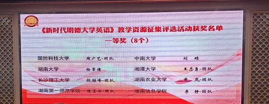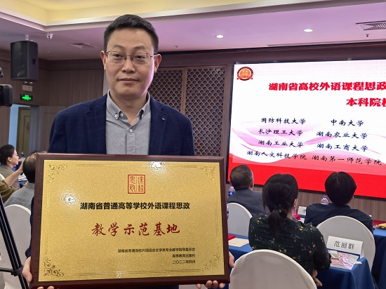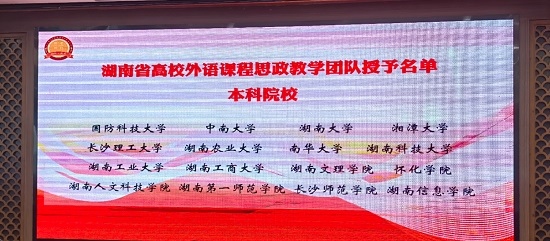 在激烈的竞争中,威廉体育williamhill外国语学院斩获颇丰,亮点频出。院长段胜峰教授获聘湖南省高校外语课程思政联盟委员,外国语学院荣获由湖南省高校外语教执委和高等教育出版社联合颁发的“湖南省普通高等学校外语课程思政教学示范基地”称号,外国语学院教学团队(段胜峰、钟桂蓉、崔巍、杨龙秀、冯春、凌剑春、李巍、彭小红)精心设计的教学方案在本次大会教学资源征集评选活动中荣获一等奖,同时获得“湖南省高校外语课程思政教学团队”称号。