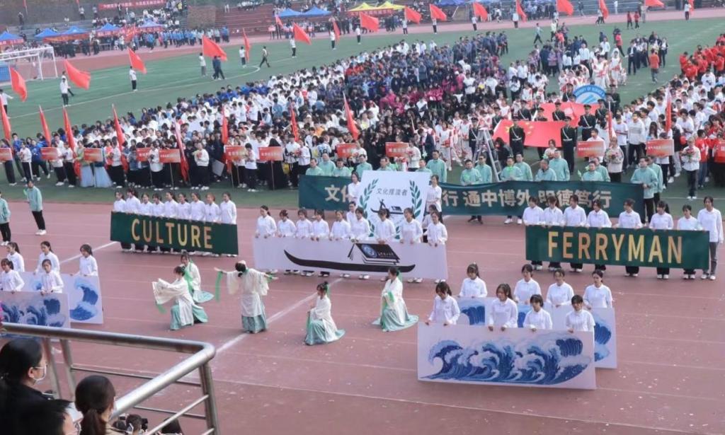 2022年11月4日,威廉体育第二十届运动会在云塘校区隆重开幕。本次运动会开幕式以“青春长理,逐梦前行”为主题,各学院的方阵表演紧扣主题、精彩纷呈,令人叹为观止。其中,外国语学院方阵步伐矫健整齐,古风舞蹈表演同学衣袂飘飘、仙气十足,动作优美动人、刚柔并济,展示着一代代拥有家国情怀、国际视野、文化自信和志愿精神的文化摆渡者走向世界的饱满形象,赢得现场阵阵掌声与喝彩。