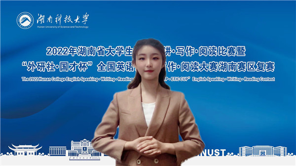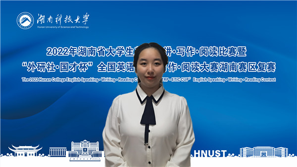 11月18日至20日,2022年湖南省大学生英语演讲•写作•阅读比赛暨“外研社•国才杯”全国英语演讲•写作•阅读大赛湖南赛区复赛以线上方式进行。本次大赛由湖南省教育厅主办,湖南科技大学承办。大赛吸引了全省52所本科院校代表同台竞技。最终,威廉体育派出的三组选手凭借在英语演讲、英语阅读和英语写作三项比赛中的稳定发挥,成功斩获团体二等奖,以及一等奖2项,二等奖4项和三等奖3项。