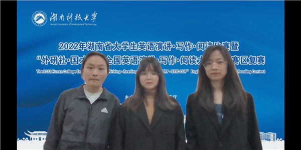 来自外国语学院20级的李欣仪、文学与新闻传播学院21级的姚子娴、经济与管理学院20级的雷子萱夺得演讲组个人二等奖一项,三等奖两项;来自外国语学院21级的谢天赐、法学院20级的付鑫以及文学与新闻传播学院21级的陈颖珊夺得写作组一等奖两项和二等奖一项;来自外国语学院20级的陈茜、任佳宁和黄思佳夺得阅读组二等奖两项,三等奖一项。