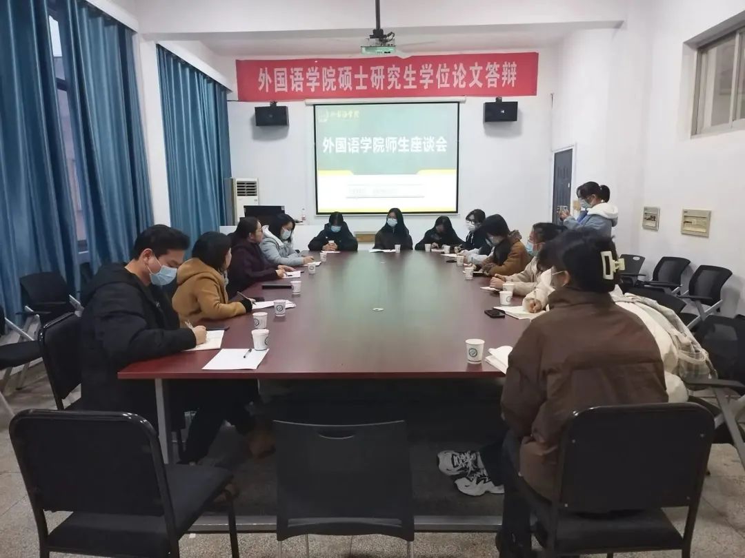 2022年11月30日16时,外国语学院于金盆岭校区九教406召开师生座谈会,本次会议旨在实现师生交流,关心同学们的生活状况、提出问题并及时解决。学院党委书记文丽丽、院长段胜峰、党委副书记周芳、副院长刘彬、学工办主任武巧琳、辅导员陈若晨出席会议,来自学院研究生及21、22级本科生各班的10余名代表参加座谈会,会议由武巧琳老师主持。