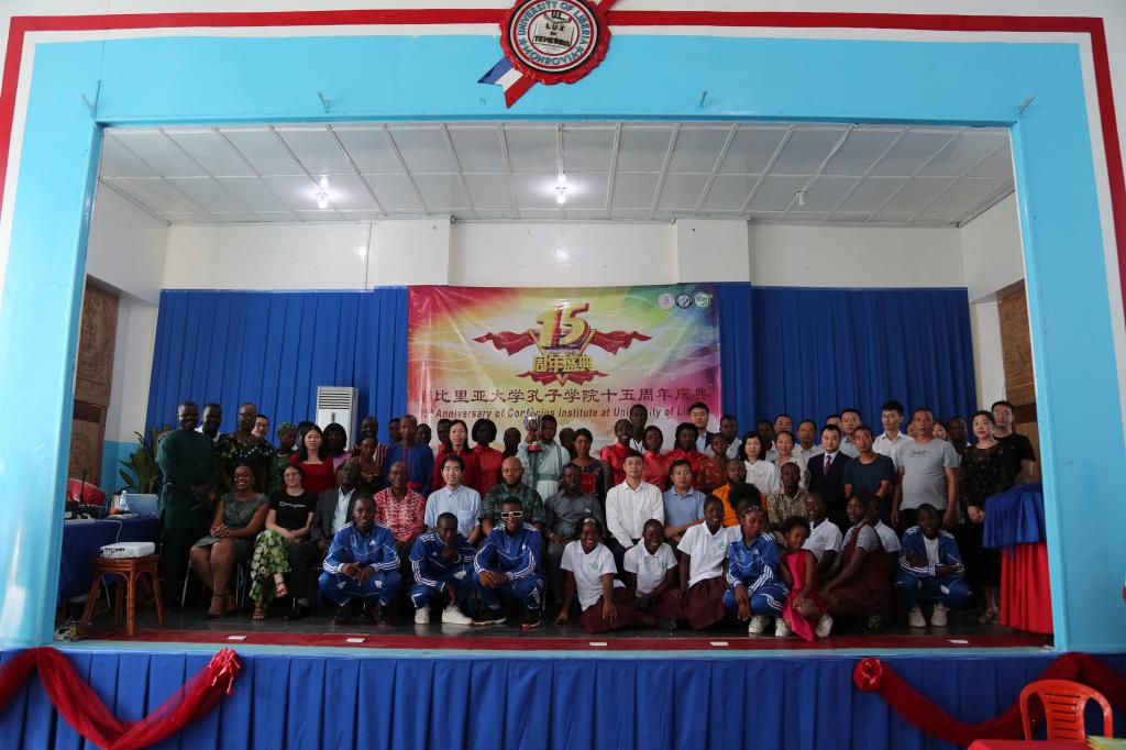 当地时间2023年5月26日,利比里亚大学孔子学院在利大国会山校区大礼堂成功举办成立15周年庆典活动。中国驻利使馆代表、利教育部部长Sonii、外交部副部Sawyer、青体部副部长Bemah、利大校长代表Tweh、利大各学院院长、利大孔院各教学点负责人、中资企业和机构代表、利大孔院师生近300人参加活动。