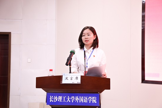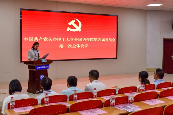 文丽丽代表第三届党委作了题为《聚焦创建“双一流”,实现高质量发展,为建设工程特色鲜明的高水平教学研究性学院而努力奋斗》的工作报告。报告对过往五年的工作进行了全面总结,指明在学院党委的坚强领导下,党建引领、人才培养、学科专业建设、师资队伍、科研水平、社会服务、育人环境等方面均取得可喜成绩;总结了经验与不足,科学分析了新阶段面临的机遇与挑战,对未来五年的工作任务做出部署,提出“坚持人文性、创新性,走差异化、优势化的特色内涵发展之路,探索‘外语+X’人才培养新模式”的发展思路和“国内知名、省内一流,文工商贸结合、工程特色鲜明的高水平教学研究型学院”的建设目标,并提出“五力”的建设路径,即落实立德树人根本任务,强化协同育人,提升人才培养参与力;统筹交叉学科资源,强化工程特色,提升学科专业引领力;激发人才队伍活力,强化团队梯度,提升教学科研贡献力;建设湖湘文化国际传播前沿阵地,强化对外交流,提升社会服务影响力;弘扬“文化摆渡”精神,强化以文育人,提升干事创业凝聚力。报告强调要坚定不移推进党的全面领导,持续提升统揽全局能力、深入推进全面从严治党、切实强化干部履职担当、有效落实思想政治工作、坚决深化青年打底工程。