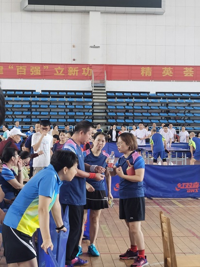 我院对于此次的乒乓球赛高度重视,很早就开始选拔队员、积极备战。学院党委书记文丽丽大力支持,亲自督战。暑假期间队员们冒着高温每周坚持训练,比赛现场团结拼搏、互相帮助、边打边练。退休近两年的魏国实老师全程充当教练、陪练、场外指导,不辞辛苦,无怨无悔,其热爱学校、怀念学院、想念同事和学生的心情洋溢在比赛现场。尽管按规定他不能参赛,但流连于乒乓球台旁,他也异常兴奋,无比幸福。