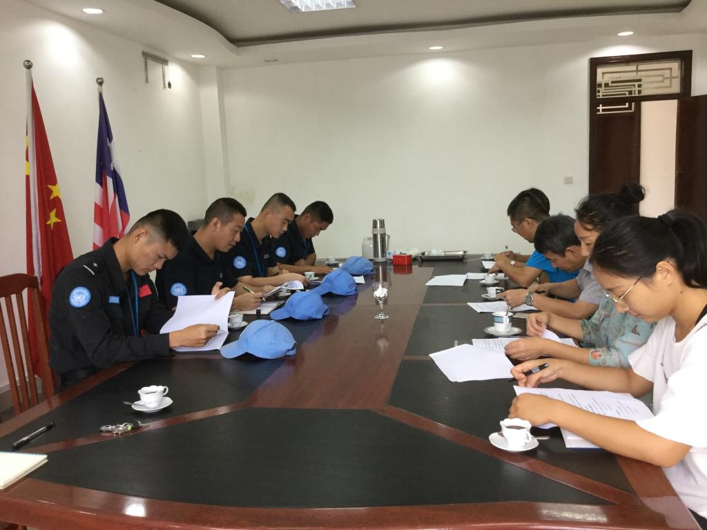 李亚斌教导员代表全体防暴队对利大孔院取得的成绩表示热烈祝贺,对孔院教师们为即将联合举办第三届武术交流活动所作出的努力表示由衷感谢,并就活动方案中彼此双方的具体分工、节目安排、时间安排、主持人主持词的敲定等细节与大家做了深入的探讨。防暴队的李江南警官曾在少林研习武术,对此次武术交流的武术节目编排提出许多中肯的意见。李江南警官提出了用集体旗、集体棍以及八仙过海(个人展示)等节目,来展示中国武术的精髓的思路,得到了与会人员的一致赞同。孔院志愿者教师李晶晶负责利大孔院此次活动的文艺表演,她就有关文艺节目编排及与本地学生排练情况等方面做了详细汇报,并就接下来要做的工作做出了一个详细的方案。会议现场气氛十分融洽。