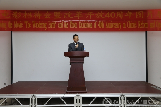 付吉军在致辞中强调,电影《流浪地球》体现了中国亲情观念、英雄情怀、奉献精神和国际合作理念,表达了全球各国共同努力的“人类命运共同体”内涵。他表示,40年的改革开放,使中国走上了繁荣富强之路。改革开放不仅深刻改变了中国,也深刻影响了世界。中方愿同利方共同努力,对接维阿总统“亲贫计划”发展战略,切实帮助利走上自己的发展自强道路。