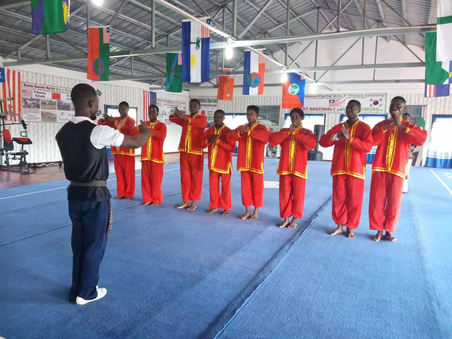 中国武术在当地有相当大的影响,中利武术交流活动在首都蒙罗维亚已成功举办三届。去年年初在驻利使馆的支持下,中利武术学校正式成立,同时挂牌成为利大孔院的武术课堂。武术课堂的总教头MASTER RUSSIAN痴迷中国武术,多次前往中国学习,在少林寺、武当山等地都留下了足迹。中国武术的本质是强身健体,追求人自身的和谐安康、追求社会的和谐稳定,武术课堂的开设对于了解中国文化有积极的意义。中利武术交流,深入了两国民间交流,同时也激励了孔院学生弘扬社会正义、维护世界和平、加深国际合作的正气。