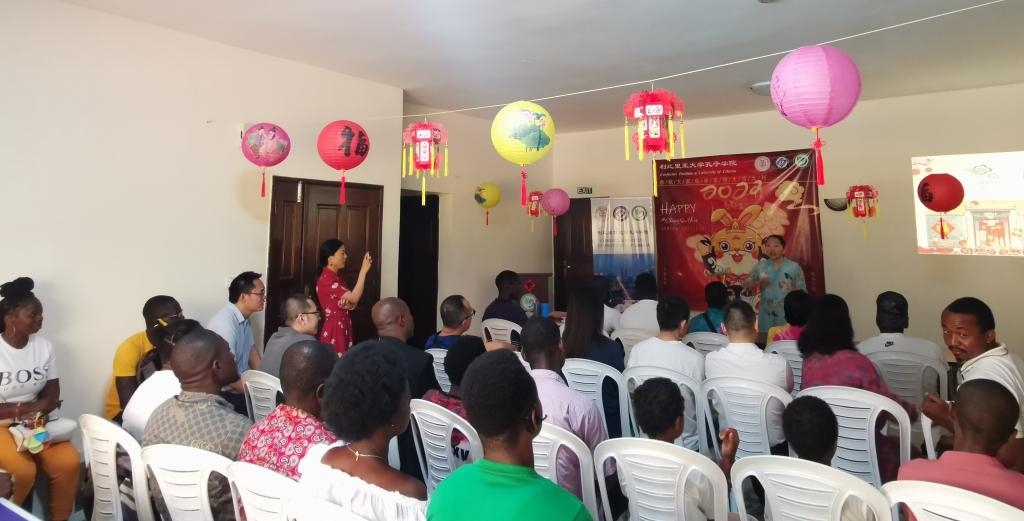 当地时间2023年1月14日,利比里亚大学孔子学院在驻地成功举办迎新春文化活动。利大孔院师生、各教学点负责人、中资机构代表以及留华留学生代表等六十余人欢聚一堂,共同庆祝中国农历新年的到来。