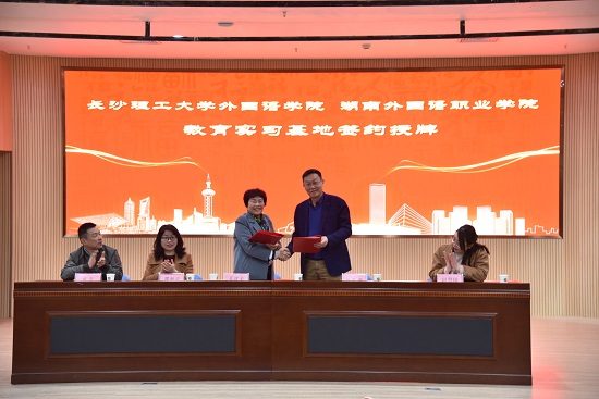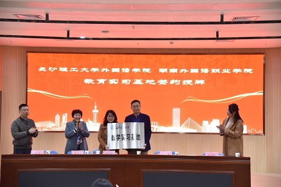为促进威廉体育williamhill英语专业人才培养和学生教育实习,2021年3月22日,威廉体育外国语学院院长段胜峰教授、副院长黄坚教授、外国语言文学系主任胡伟副教授和副主任姚尧博士一行赴湖南外国语职业学院,举行教育实习基地签约与挂牌仪式。