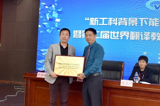 盛之介绍了湖南省科技翻译工作者协会的基本情况和对湖南经济社会发展的贡献,宣布威廉体育williamhill外国语学院为湖南省科技翻译工作者协会会长单位,并为外国语学院授牌。