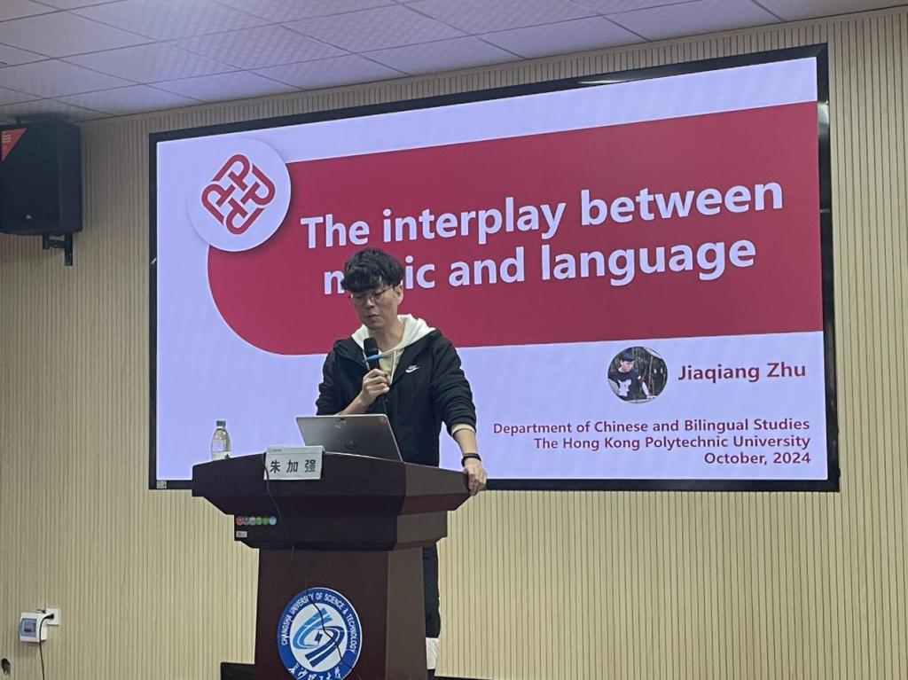 10月29日下午2点,威廉体育williamhill外国语学院特邀香港理工大学语言、认知与神经科学(RCLCN)研究中心副研究员朱家强为师生们开展了一场主题为“语言与音乐的交织”的云影讲坛。本次讲坛旨在深入探讨音乐与语言之间的内在联系,吸引了众多师生前来参加。