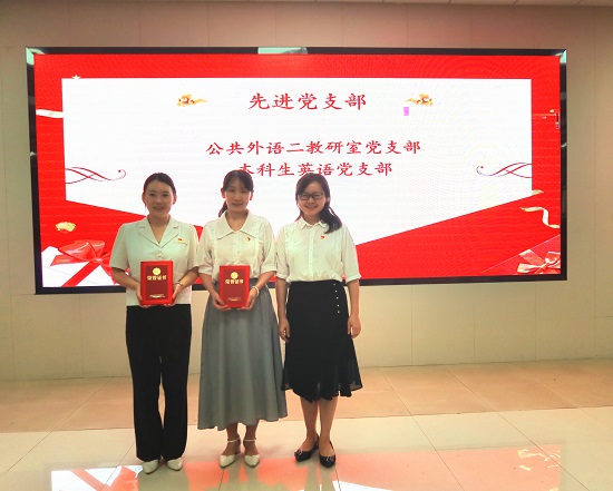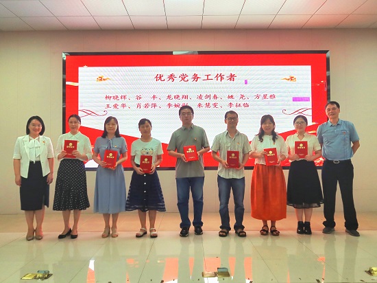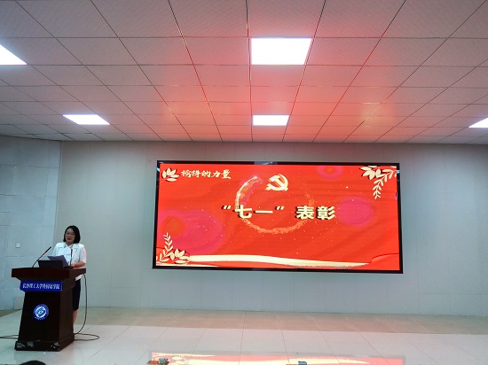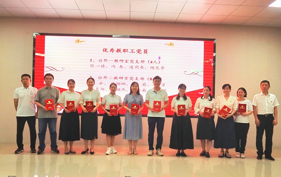 第二个环节,由学院党委副书记周芳宣读表彰决定,陈一婧22名教职工党员和刘乐冰19名学生党员获评学院“优秀共产党员”称号、龙晓翔11人获评学院“优秀党务工作者”、公共外语二教研室党支部2个党支部获评学院“先进党支部”