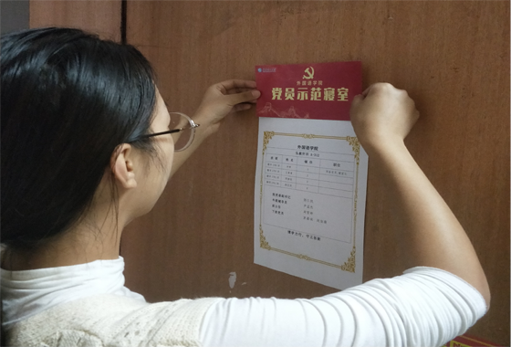10月中旬以来,学院开展学生党员“亮身份”活动,给 “党员示范寝室”挂牌亮身份,10月20日全部到位。