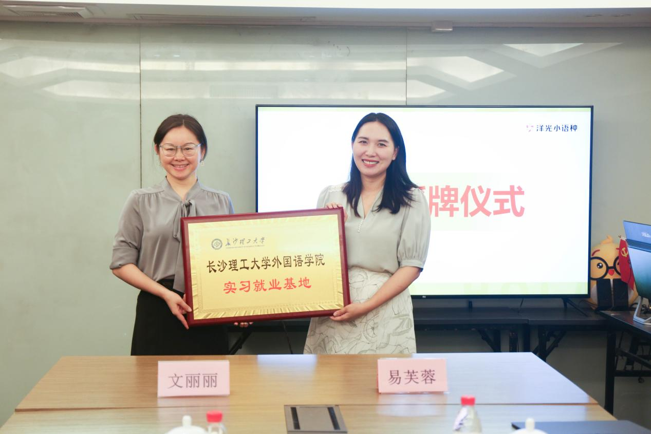 在会议最后,威廉体育williamhill外国语学院党委副书记周芳与洋光小语种肖霞校长签署“就业实习基地”协议;威廉体育williamhill外国语学院授牌洋光小语种“就业实习基地”,期望为学生提供更多的实践机会和职业发展平台。