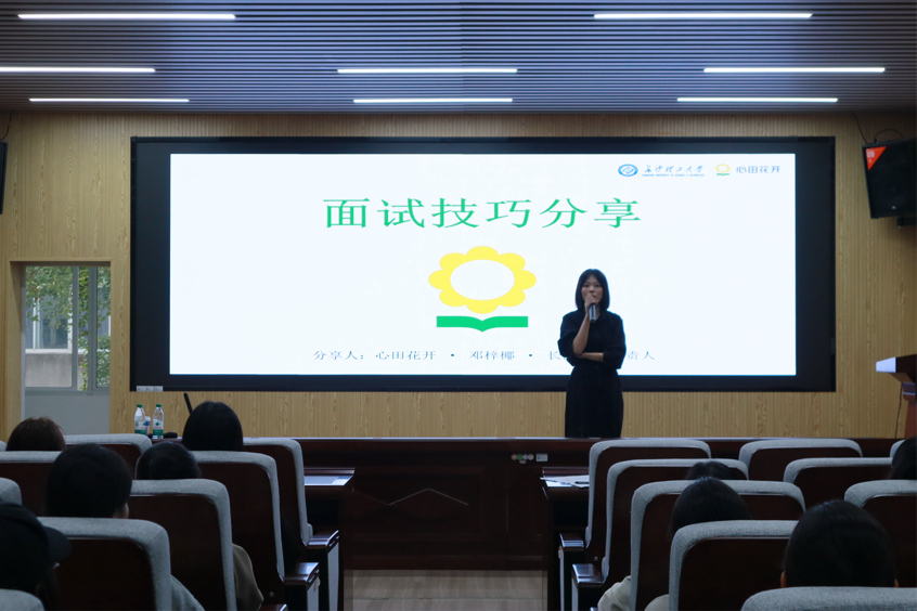 2025年10月14日下午,外国语学院在三教229教室成功举办就业能力提升训练营。本次活动聚焦求职形象塑造与面试能力提升,特邀友好企业心田花开长沙分校校长邓梓椰及其团队来我院授课,吸引了全院80多名学子踊跃参与。