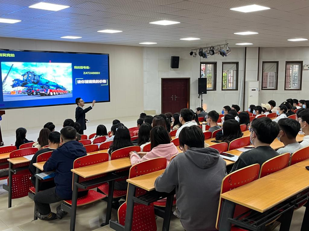 事业部人力招聘主管吴和东以十分有趣的方式与在场的师生进行互动,并通过讲述施工案例让大家更好地了解了起重机行业的基本情况及本公司产品在国内外的销售情况。