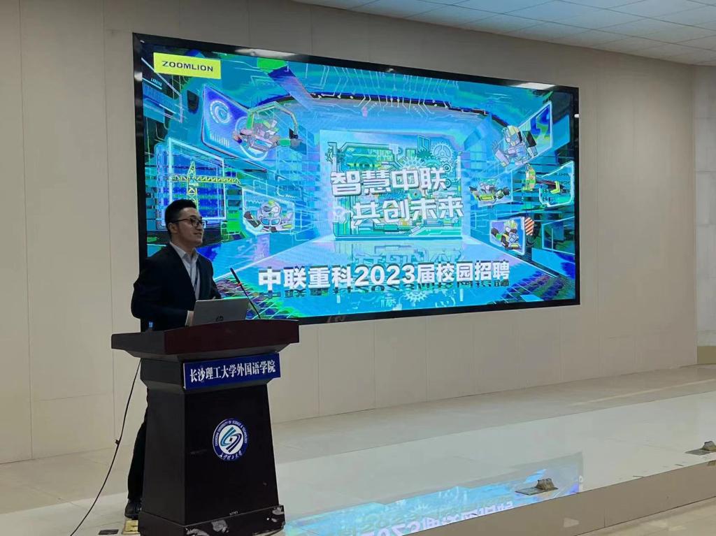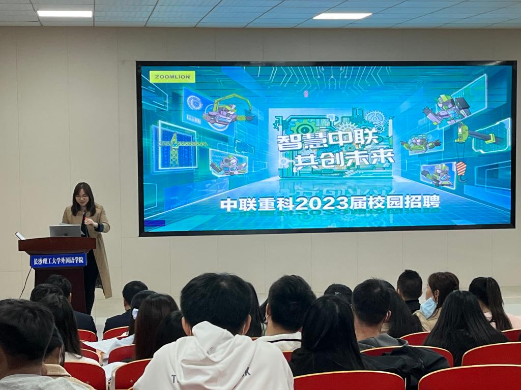 事业部海外营销总监李觅向大家详细介绍了中联重科公司的基本情况和良好行业前景,并介绍了主要招聘的岗位类型、各岗位职责及任职条件,鼓励同学们开拓自己的就业视野,到祖国建设发展需要的地方去,做一个对国家和社会有贡献的青年人。