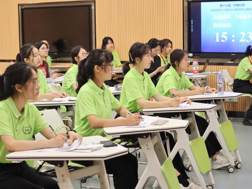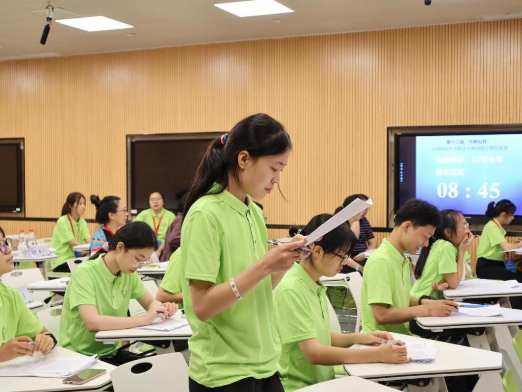 “我们赛场的学生都好可爱,特别配合我,学生的综合素质很高,全程下来都挺顺利的,希望能取得一个好成绩!”刚从综合教学楼C区304大学英语综合课组比赛出来的选手章珩跟旁边的选手感慨道。2022年6月18日至19日,第十三届“外教社杯”全国高校外语教学大赛(大学外语组)湖南赛区复决赛暨颁奖典礼在威廉体育williamhill成功举行。来自湖南省内30所高校的61名专业选手们分别参加到大学英语综合课组、大学英语(视)听说课组、大学日语组三个组别的比赛角逐中。