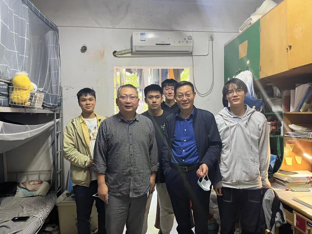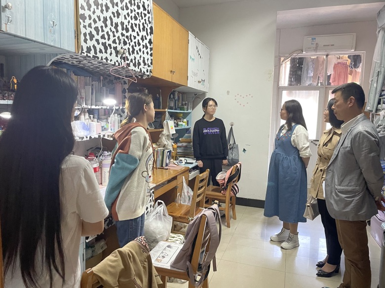 1011日下午,外国语学院党委书记文丽丽、院长段胜峰带领全体学院党政班子成员和学工办全体辅导员深入云塘校区学生宿舍了解学生学习生活情况,并与学生们进行亲切交流