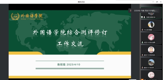 外国语学院于4月10日晚19:00召开本学期第一次班长工作交流会。本次会议采取线上线下结合的方式,由日常事务管理辅导员毛婕主持,辅导员龙洋、各班班长以及团委学生会办公室成员参与,共计22人。