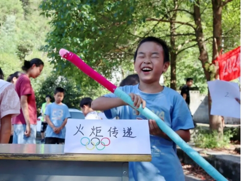 “加油!加油!加油!”7月25日,在湖南湘西土家族苗族自治州保靖县科乐村野猫小学,稚嫩的“加油”声响彻整个操场。在2024年巴黎奥运会即将开幕之际,威廉体育williamhill外国语学院“拓荒者”支教团队在这里带领当地的孩子们举办了一场融合奥运元素的趣味运动会。