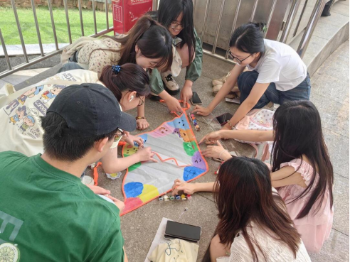 当天,100多名长理外语学子在湘江风光带风帆广场上分组自制风筝。创作过程中,广场上一片欢声笑语。他们或以母亲节为主题,或以期待的未来为主题,或以美好的夏日为主题,在风筝上写诗作画,大胆运用丰富色彩,巧妙构思,创作出了许多具有特色的风筝。