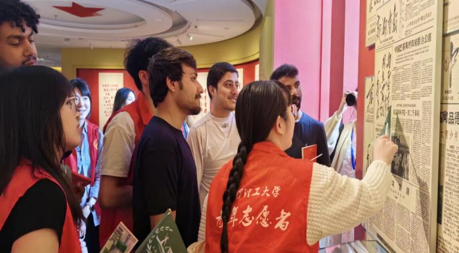 在纪念馆内,“文化摆渡者”志愿服务队带领留学生们透过泛黄的照片、朴素的日记和珍贵的实物,走进雷锋同志短暂而光辉的一生。