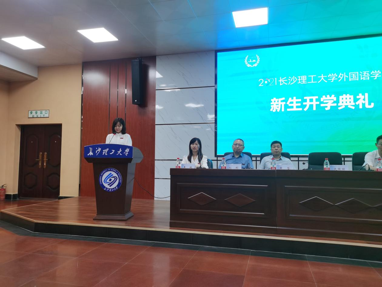 院党委书记文丽丽为本次开学典礼致辞。文丽丽向新生提出三点建议与期许:其一,坚定理想信念,做心系家国的外语人;其二,潜心钻研学习,做通达古今的外语人;其三,练就过硬本领,做堪当大任的外语人,努力在实现中国梦的伟大实践中创造自己的精彩人生,成长为“底色亮、实践强,有情怀、敢担当”的长理代言人。