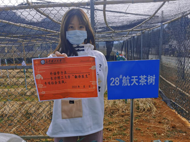 外语学子王筱婧在英德红茶茶地进行翻译实践