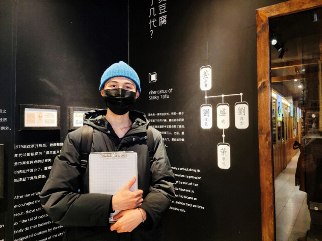 张浩正是实践活动的一员。在活动开始之前,作为长沙本地人的张浩就深深感受到了老长沙臭豆腐的魅力,不管是来长沙旅游的游客还是市民,都会一品臭豆腐的滋味。于是他来到文和友臭豆腐博物馆,向工作人员表明了自己的来意,表示希望通过自己及学院翻译团队的力量能更好地传播古老美食的文化魅力。他发现,对博物馆相关材料进行翻译和校对时,也充分提高了自己的翻译能力和专业素质,也为以后践行“文化摆渡者”精神助力。