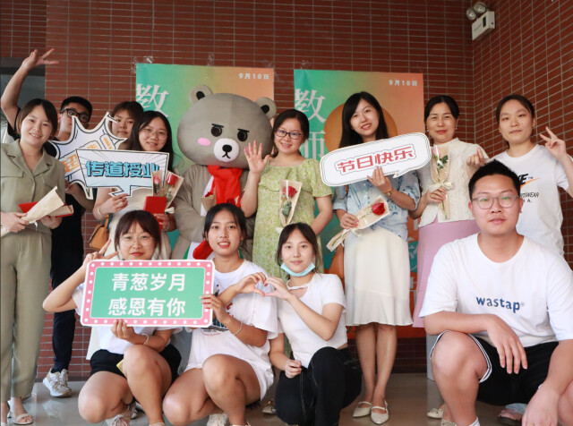 此外,学生们准备的唱跳节目王心凌的《爱你》和苏有朋的《爱》让现场成为了欢乐的海洋,一位身着小熊玩偶服的学生,向每位老师递上代表师生情的鲜花……专业教师姚尧由衷感慨:“活动非常有意义,对廖老先生的默哀、收到学院工会精心准备的形象照、学生手写的教师节贺卡和可爱孩子们的表演,都让我感觉为人师的使命感和幸福感。”
