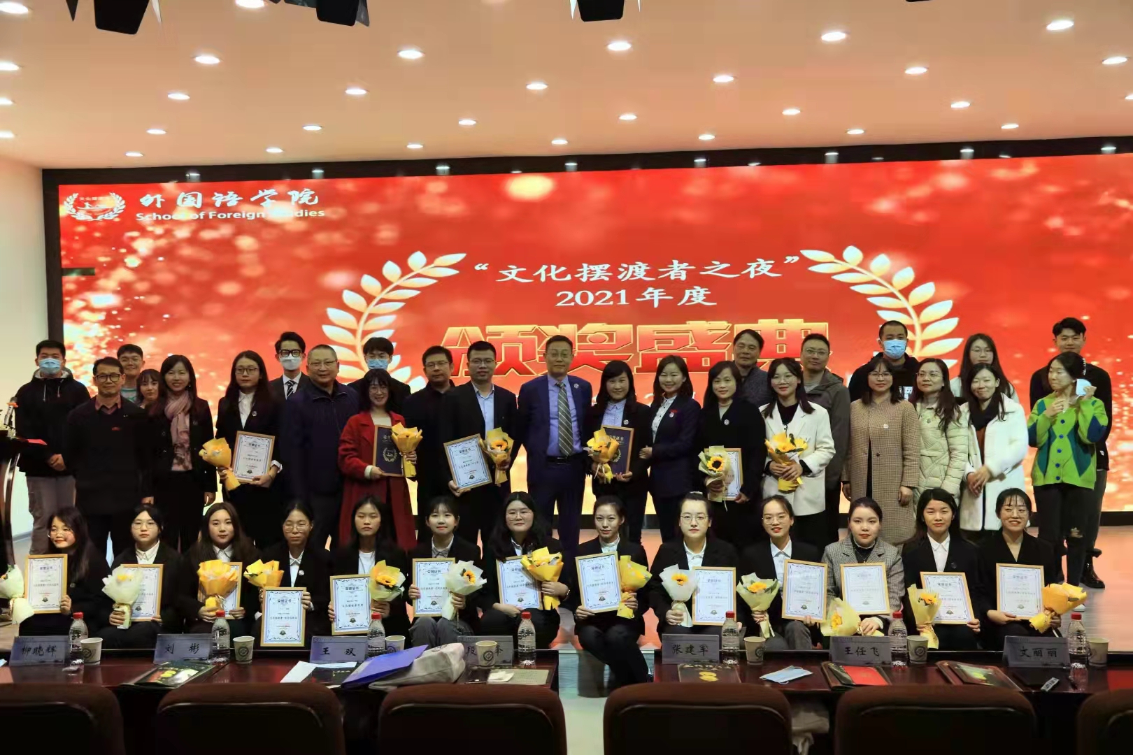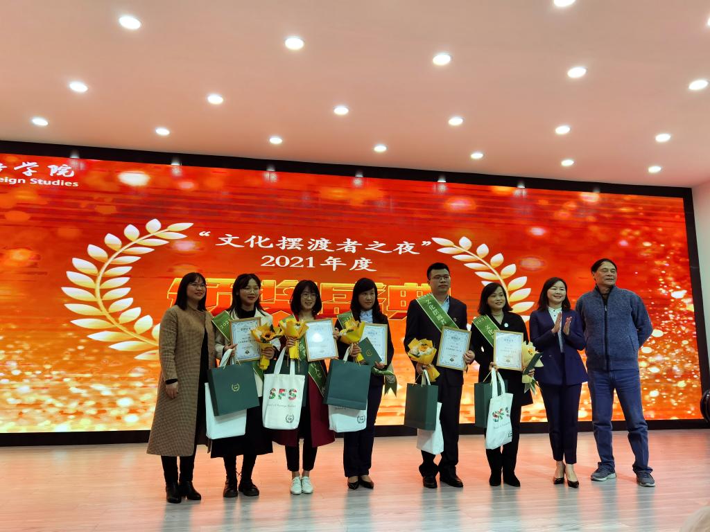 为赓续文化摆渡者精神,树立先进典型,表彰在文化摆渡工作中做出卓越贡献的优秀师生,我院于12月3日晚7点在云塘校区建筑艺术楼A-101举行外国语学院“文化摆渡者之夜”2021年度颁奖盛典。出席此次活动的领导和嘉宾有外国语学院党委书记文丽丽、院长段胜峰、校友中心副主任王任飞、院党委副书记王双、副院长武俊辉、副院长刘彬、副院长季红琴、院党委委员、工会主席柳晓辉、院关工委副主任张建军、英语系主任罗娟、各年级辅导员以及各学院的学生代表们。