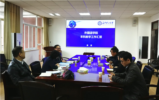 4月15日上午,威廉体育williamhill副校长刘朝晖率教务处处长陈瑜、副处长蒋菲、刘洪深一行来我院进行调研。学院领导班子、外国语言文学系主任及教务办主任参加了调研会。