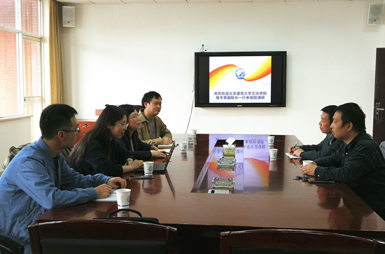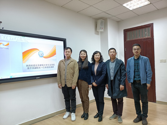 115日下午,北京建筑大学文法学院副院长侯平英一行四人来我院调研。外国语学院对本次同行的调研活动高度重视,教学副院长黄坚、外国语言文学系主任胡伟出席了调研活动。双方就我院省一流课程“通用工程英语听说”的建设、大学英语学分和课程设置、“十四五”规划等方面进行了深入的探讨和交流。