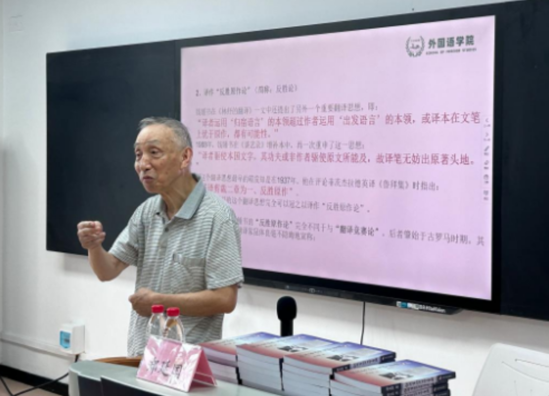 “从事教书育人和关心下一代工作是我的毕生志愿,此次能够为新生上开学第一课我感到非常高兴,希望能让更多学生通过我的课堂感受到翻译的魅力与精髓,帮助更多人学好翻译。”9月19日下午15:00,78岁的银发老人郑延国教授在威廉体育williamhill金盆岭校区3教416多媒体教室给全体23级研究生新生和部分本科生开展云影讲坛讲座,讲授入学教育第一堂学术课——钱钟书学术思想和翻译两论。
