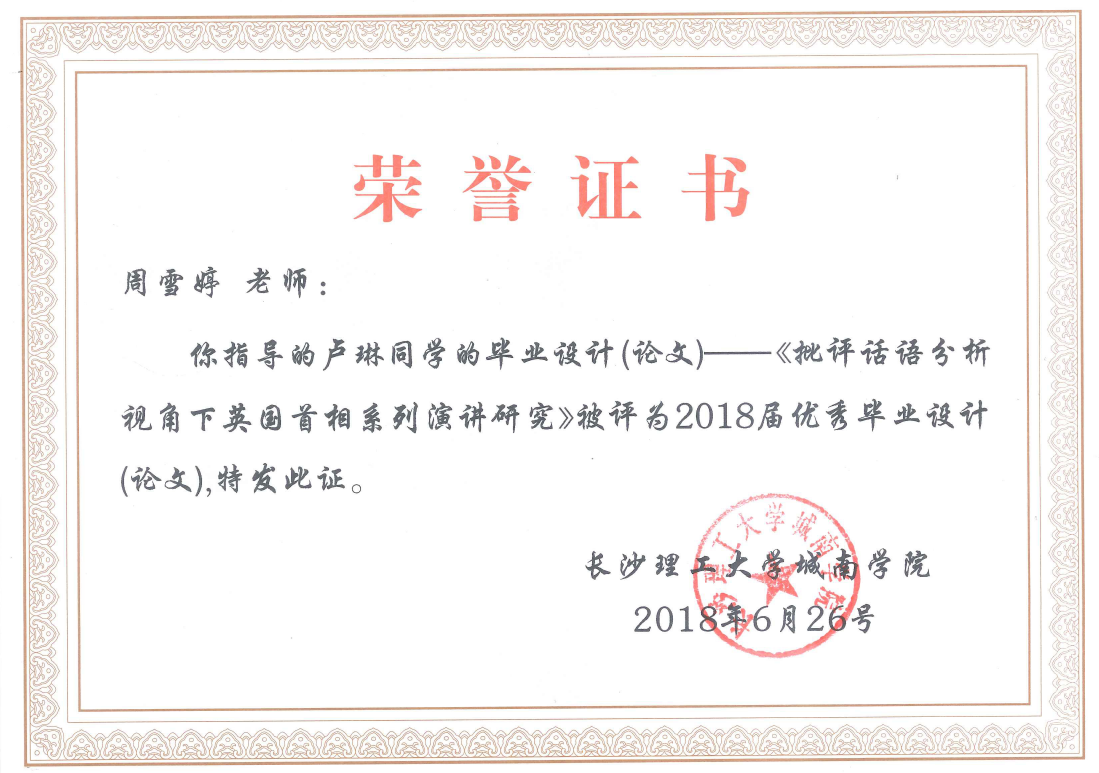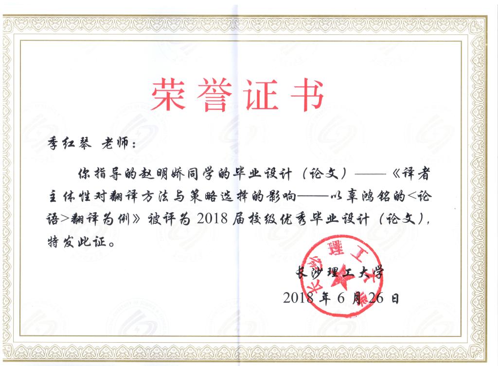 2018届本科毕业生论文工作已顺利结束,经个人申请、学院推荐和学校审核,我院段静、季红琴、周雪婷老师指导的本科毕业论文获2018届校级优秀毕业论文。