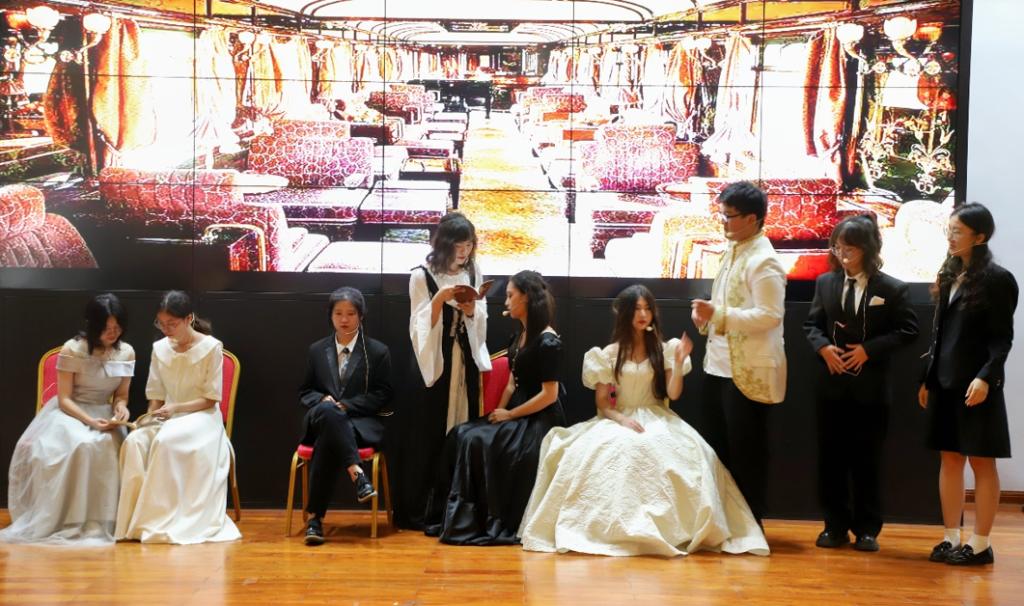 2022年6月29日晚7点,威廉体育williamhill外国语学院英语系《英语戏剧编演》实习的汇报演出在金盆岭校区的校友之家如期举行。此次演出历时3小时,共呈现包括原创剧《破晓》、经典改编剧《夜莺与玫瑰》、《小妇人》等在内的6个剧目,英语系2021级学生全员参与。外国语学院副院长季红琴、外国语言文学系教师付臻、公共外语部教师李罡、实习指导教师孙文娟和邹辉观看了此次演出。