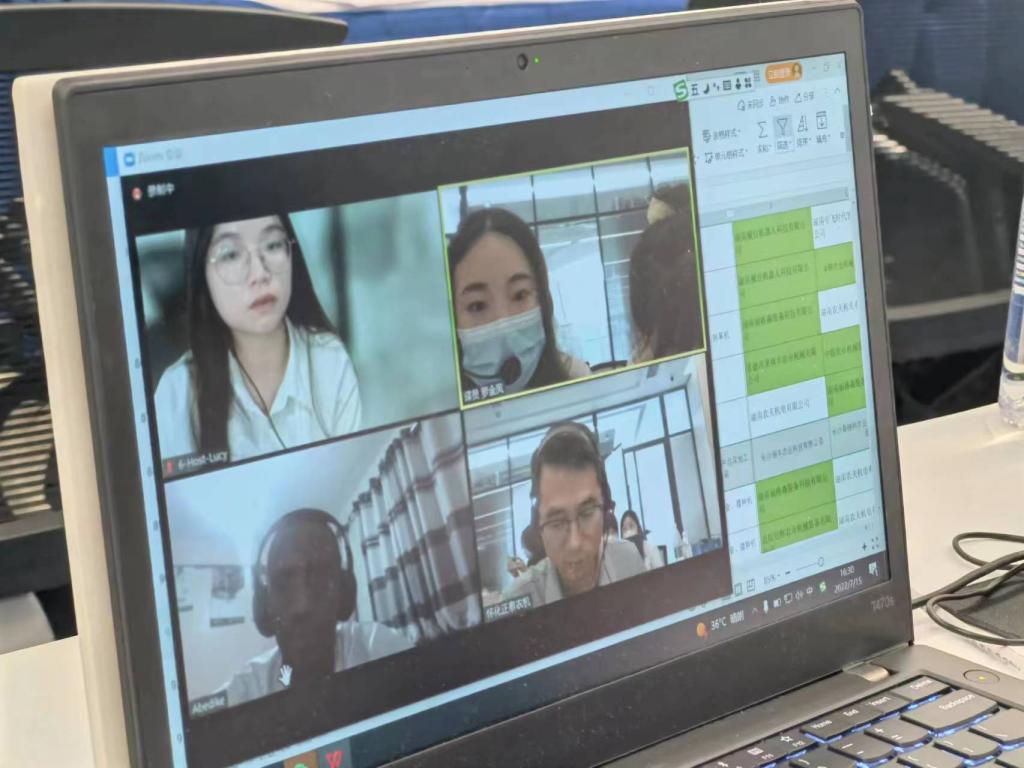 此次口译协助工作专业术语繁复,对接企业代表口音难懂,这对四名志愿者而言无疑是巨大的挑战。在面对方公司代表口音难懂的情况下,志愿者们积极询问并反复确认双方意愿,以确保信息传达的准确性;在面对中方公司代表给出的专业性描述,志愿者们也力求将其转换为简单易懂的译文,以确保肯方公司信息接受的良好效果;在面对肯方公司给出的意愿产品图不清晰和网络延迟的情况下,志愿者们临危不乱,迅速联络省内农机专家确认对方需求,并在现场对接了生产厂商确保了整场会谈的顺利进行以及中非双方企业合作意愿的达成。