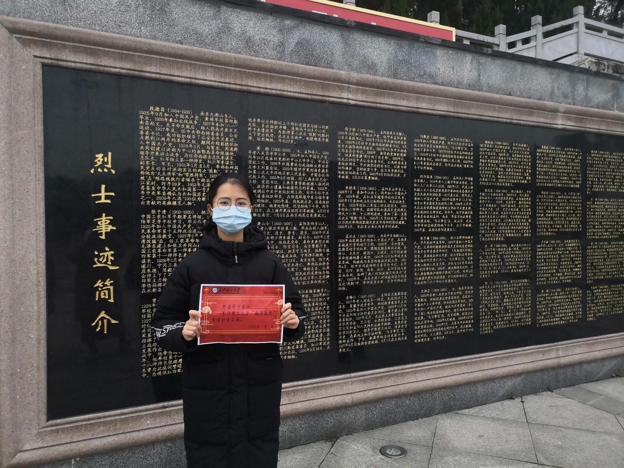 2021年1月30日,为了深入学习贯彻习近平新时代中国特色社会主义思想,更好地了解家乡的革命历史,深切缅怀抗战英烈的光辉事迹,宣扬先辈优秀革命精神,传承中华优秀品格,在社会实践中受教育、长才干、做贡献,积极培育和践行社会主义核心价值观,翻译1902班李嘉钰,英语1901班康玥,英语1901班杨璀和翻译1901班蔡佳瑶等四人组成团队,参加了威廉体育williamhill外国语学院以“砥砺奋进新时代,践行初心勇担当”为主题的家乡红色文化翻译活动中。