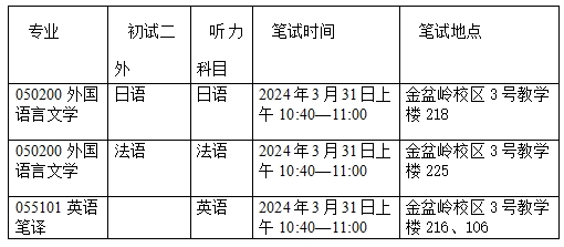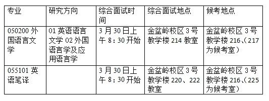 1.笔试和综合面试(分听力和面试)时间和地点安排为: