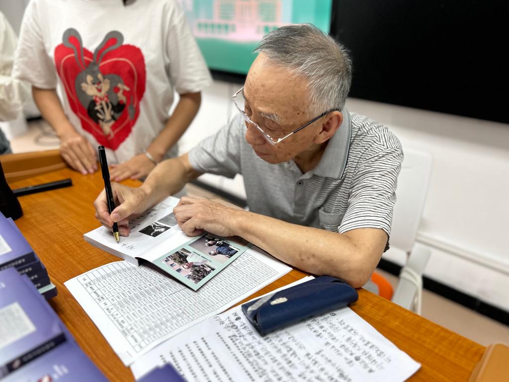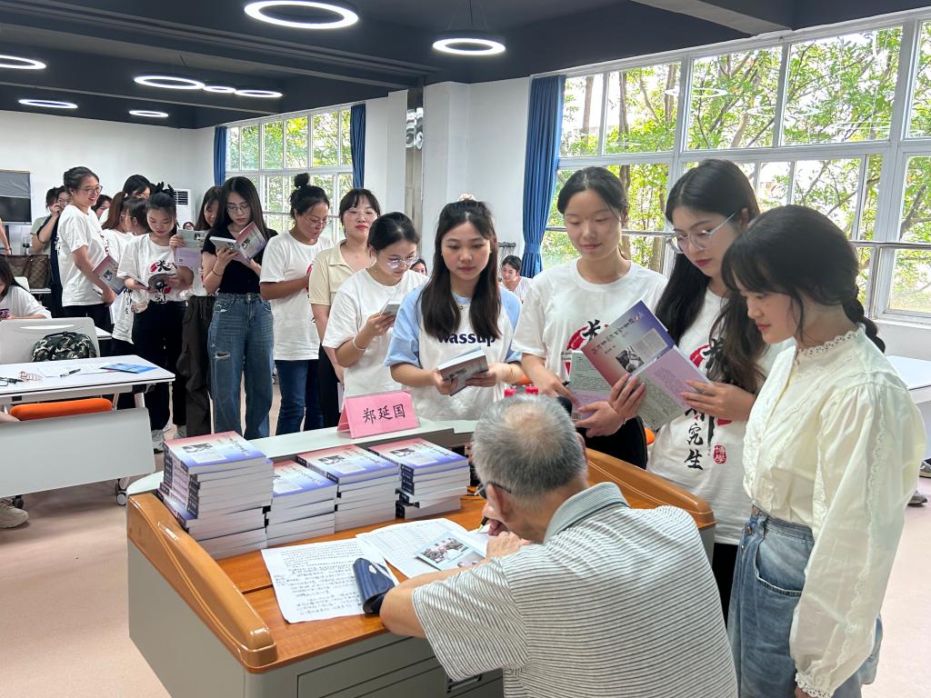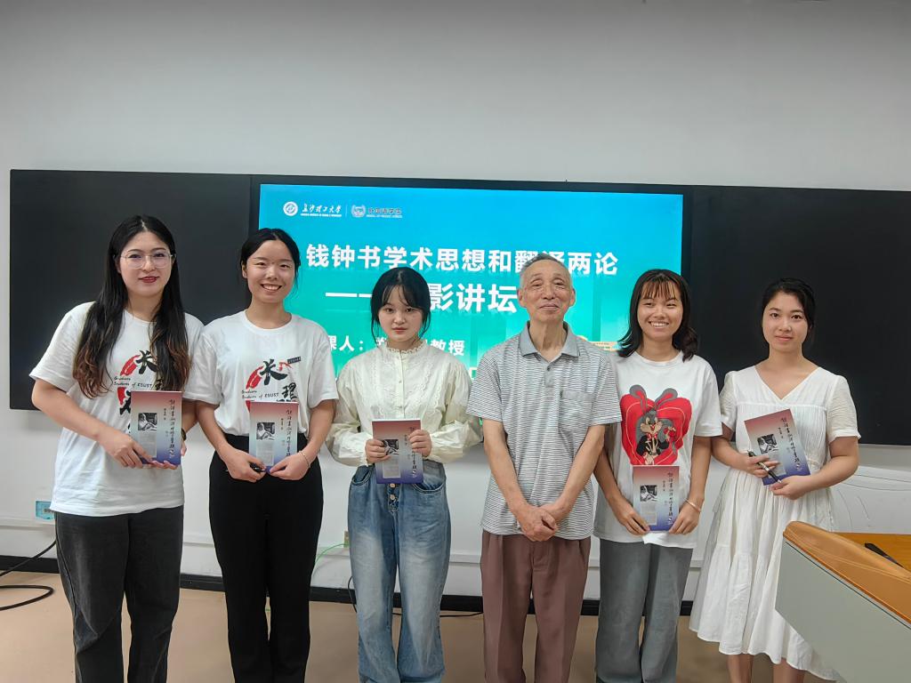 此外,郑教授还用自己的退休金从香港文思出版社为54名英语笔译专业新生购买了专著《钱钟书翻译理论与实践》,同学们万分激动地在现场排起了长龙,期待获得郑教授的亲笔签名,并与郑教授合影留念。
