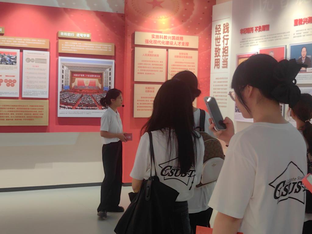 “‘三全育人’教育基地内容丰富、展览形式多种多样。我不仅体验到了艺术与科技相融合之美,还感受到了长理丰厚的人文底蕴!威廉体育williamhill在自我成长的同时,不忘积极践行高校的社会责任与担当,积极服务国家战略与地方经济社会发展。作为新时代青年,我们应当把论文写在祖国的大地上,把“小我”融入“大我”!”来自英语笔译专业的易文炫如是说。