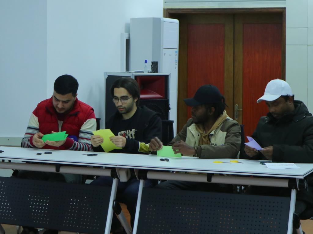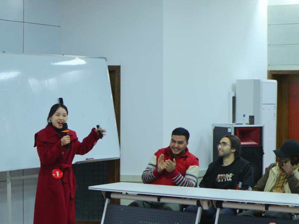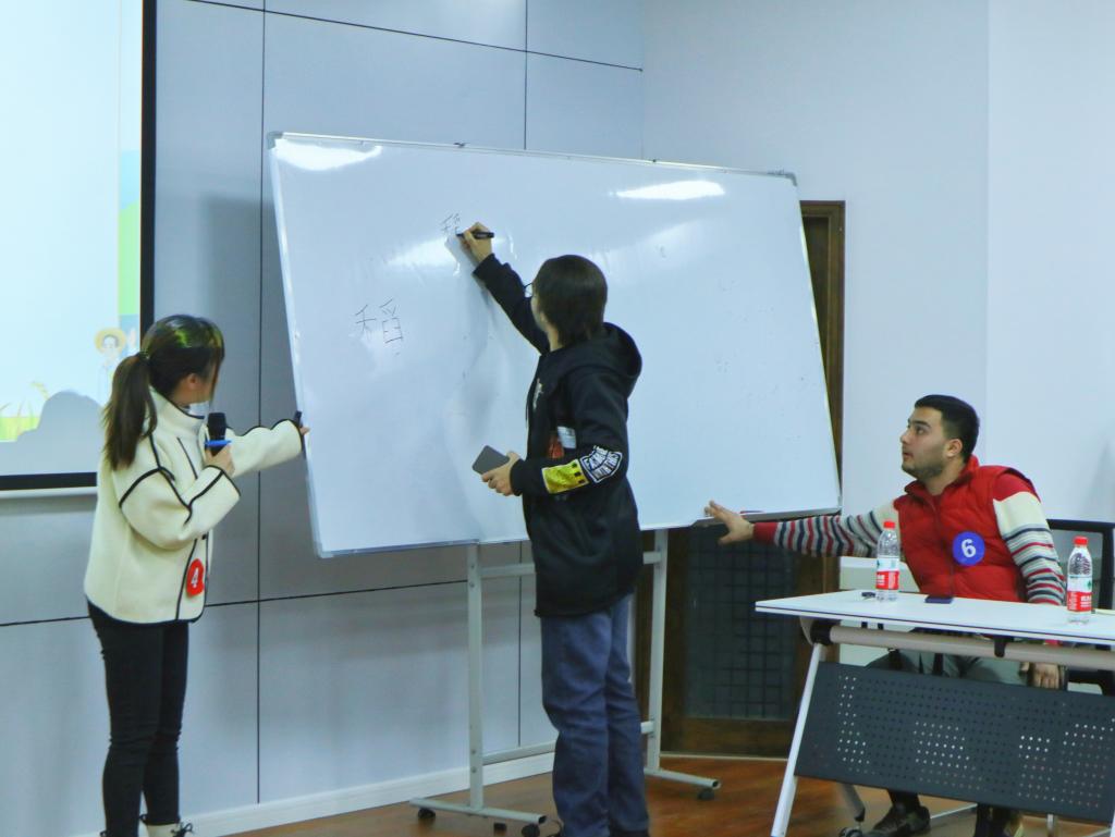 李双翼同学的授课主题为《话说中国菜之——川菜》,她以川菜为主题的短视频开篇,随后对视频中出现的川菜词汇进行细致讲解,着重介绍川菜的特色口味,引导现场留学生用菜名和味道进行造句;张雅雯同学的授课主题为《走进剪纸》,她以中国艺术相关的问题为导入,顺利过渡到中国剪纸的主题,她引导留学生组织语言形容剪纸的形状和颜色,带领留学生们在课堂上动手剪纸,使其在实践中体会剪纸的乐趣,在颜色各异的卡纸上,他们剪出了丰富精美的图形,切身体会着中国剪纸艺术的魅力;黄雨欣同学的授课主题为《桂林山水甲天下》。将家乡桂林的美景导入授课重点——比喻句,以流利的中英文双语授课,深入浅出地讲解了比喻句中本体和喻体的区别,列举出“像”字有关的语法句型辨析,让留学生们现场参与竞答,加深知识点的记忆,带动课堂的氛围,更是引起现场观众对桂林山水的向往;孙帆同学的授课主题为《稻》,采取提问的互动方式引入课堂教学,邀请留学生在白板上按笔画写出“稻”字,对笔画顺序进行及时的纠正。课堂中,从“稻”出发,介绍以稻为原材料的各类中国美食,课堂最后,她结合杂交水稻之父袁隆平先生的两大梦想,提醒大家要珍惜粮食,升华了主题;杨聪秀同学的授课主题为《这是长沙》,她以一幅长沙景区图展开教学,邀请留学生们一同寻找自己知晓的景点,随后将“是”字句型导入课堂,留学生通过练习巩固了所学句型,领略了长沙这座充满活力的网红城市的怡人美景和诱人美食;段茹青同学的授课主题为《味在中国》,以情景剧的模式展开教学,她将教学重点放在了中国菜的五种基本味道,即“酸、甜、苦、辣、咸”,引导留学生们用“形容词+的”的句式结构造句。