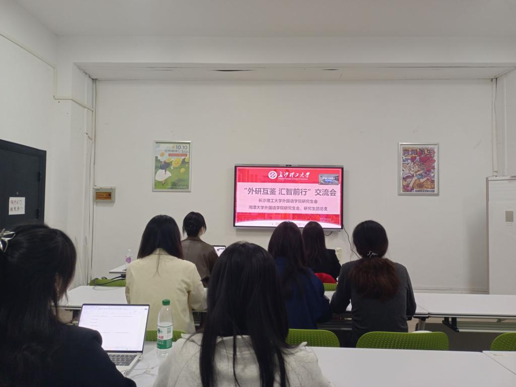 “我们的‘外语+’特色活动囊括多个系列,融合了本专业特色。”在工作内容分享环节,我院研会文体部部长石玲欣重点介绍了我院的“外语+”特色活动。“我们今年开设了新的活动‘绘本阅读课程’,由我院创业团队带头、研会协助的湘大社区科普兴趣班活动,目前也已举办四次。”湘大外国语学院研会则重点介绍了其特色内容与创新举措,展现了其工作活力与开拓精神。