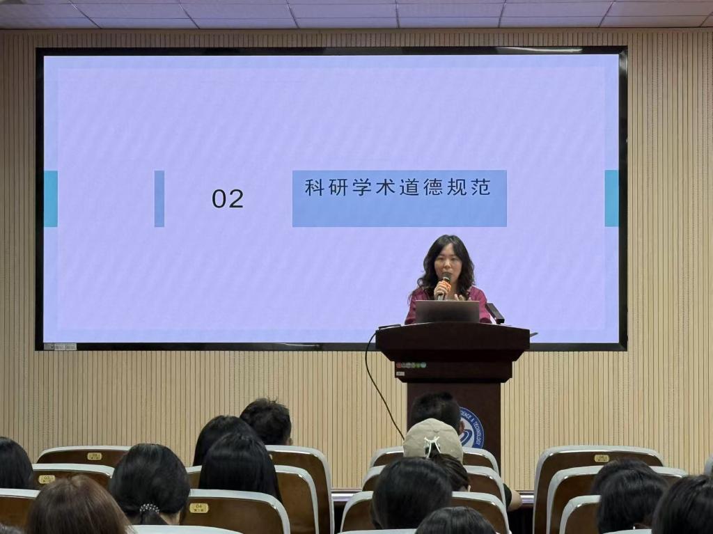姚尧首先围绕科学道德与学术规范作了系统阐述,强调学术研究必须坚守诚信底线、恪守学术伦理。她指出,研究生不仅需要具备扎实的专业知识,更应树立崇高的学术道德意识和严谨的研究态度,坚决杜绝学术不端行为。