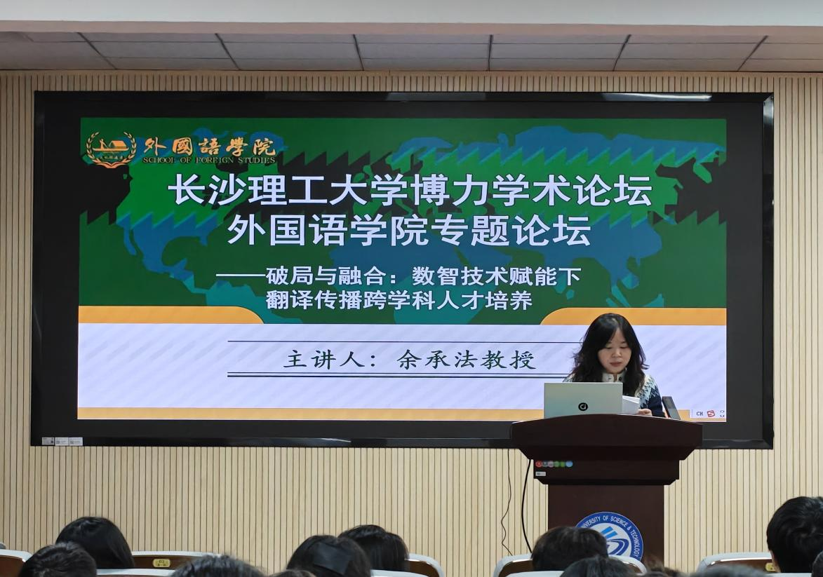 为加快培养翻译传播学跨学科的中译外高端人才,10月28日下午3点,我院特邀湖南师范大学外国语学院教授余承法于金盆岭校区3教321报告厅开展了主题为“破局与融合:数智技术赋能下翻译传播跨学科人才培养”的专题讲座。