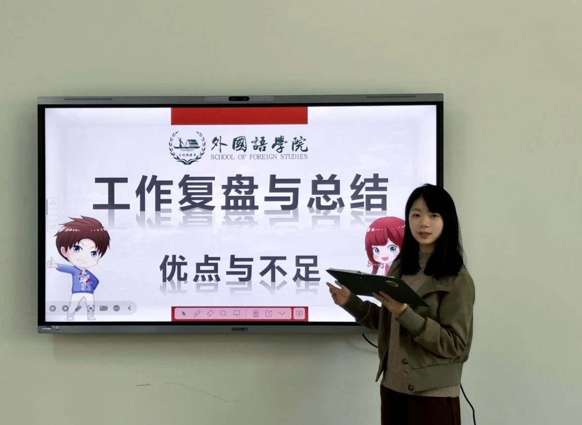 随后,轮值主席彭伊帆对近期工作进行了系统复盘。她就新闻稿撰写的注意事项进行了详细说明,强调了规范写作的重要性。接着,对于前期工作中存在组织协调问题进行了分析并从设备使用、活动材料归档、活动时间把控和分工执行的角度做了具体要求