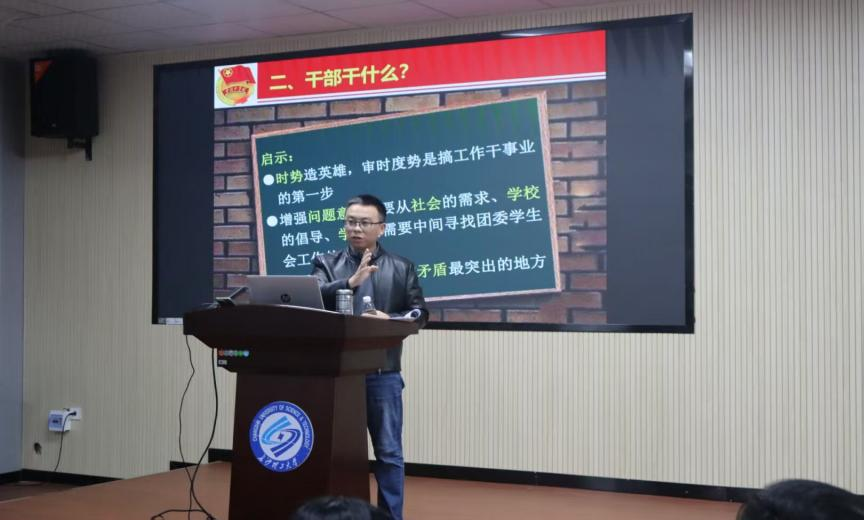 在培训环节,陈书记通过丰富的案例和故事,为全体学生干部带来了一场内容丰富、逻辑清晰,思想深刻、启发性强的培训课程,整场讲座既有理论高度,又紧密联系实际,可以说是“干货满满”,他强调,学生骨干要牢固树立结果导向,善用科学方法推动工作创新,并指出建立科学完善的工作机制与持续优化的流程是提升履职能力的关键。同时希望全体学生干部在工作中能够强化职业意识、问题意识、结果意识、责任意识,结合自身岗位职责,明确自己为什么干?干什么?怎么干?本次专题辅导有效帮助学生骨干将职业认知、问题洞察、结果导向与责任担当四项核心素养转化为实际工作能力,为其今后高效履职与个人成长明确了路径。