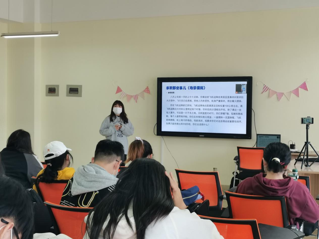 为了帮助毕业生缓解毕业和求职的压力,提供倾诉交流、互帮互助的平台,同时分享求职经验,共同解决自身和同学的困惑。外国语学院朋辈心理互助部于2022年4月12日下午在文科楼A503开展了毕业生就业求职团辅活动,